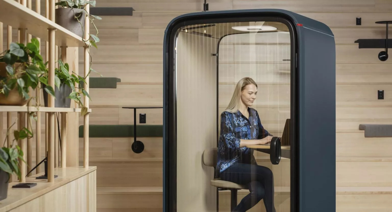 Framery One is a smart, spacious, one-person workstation designed for video calls and focus work.