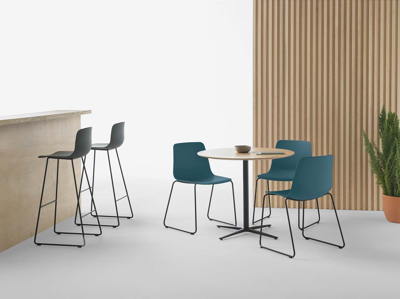 Designed by Simon Pengelly, the Inclass Varya Chair collection is a truly transversal and functional family of chairs that easily crosses the boundary between public and domestic spaces. The VARYA family configure one of the largest and most complete ranges on the market. With an elegant and refined design, VARYA allows to furnish different types of spaces with the same family of seating, keeping always coherent project aesthetic. Different, chairs, armchairs, stools and benches are generated by combining comfortable seats with an extense range bases. The broad variety of combinations, together with the extensive range of available finishes, allow for endless possibilities of customization without altering the unique character and timeless spirit of this original family designed for inhabiting the most diverse array of settings and contexts.