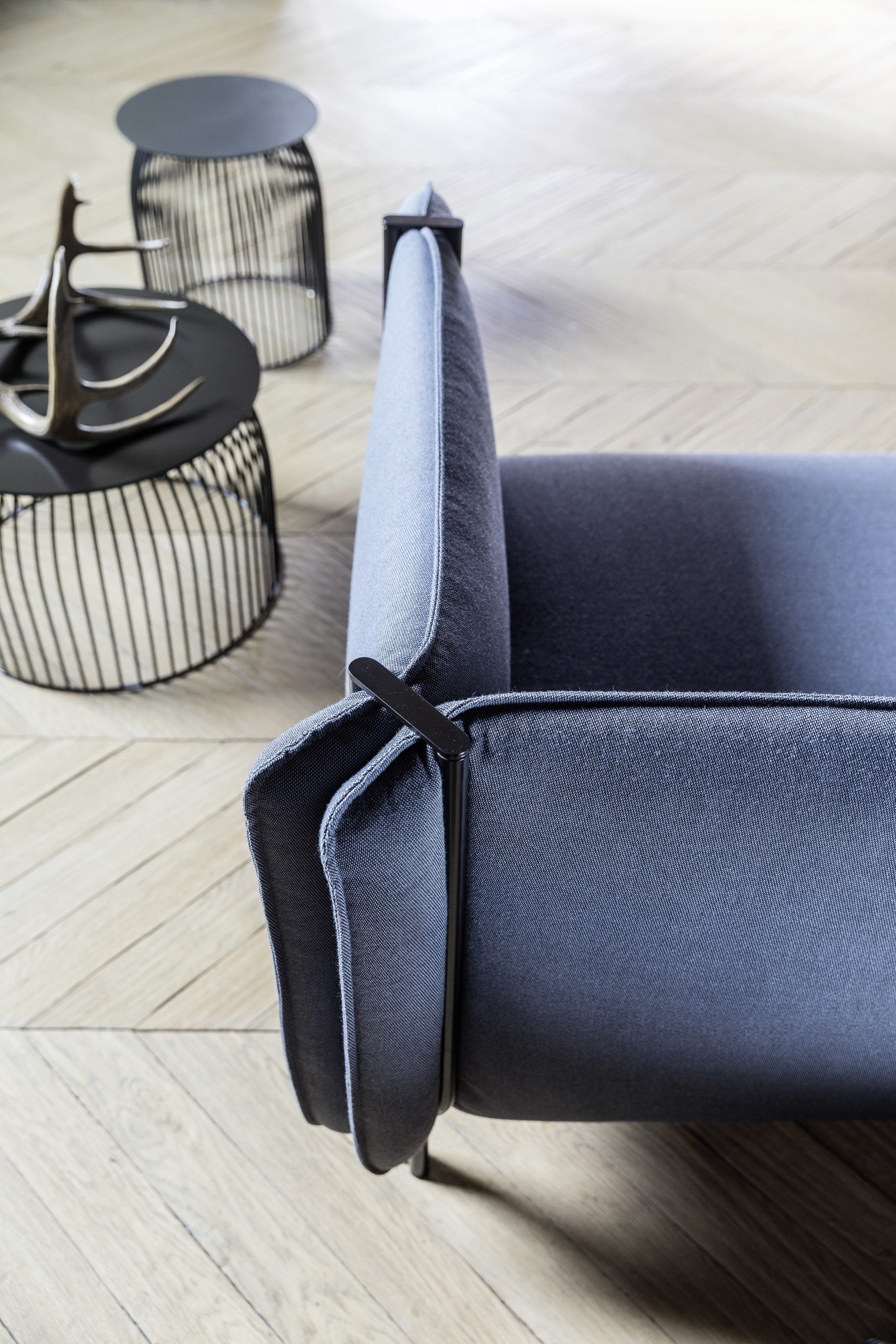 The structures of Pinch sofas and armchairs literally “pinch” the backrests and armrests: the volumes are redistributed and the padding takes on a full, soft and welcoming appearance. In the tall version, the sides are like walls in a room filled with comfort.