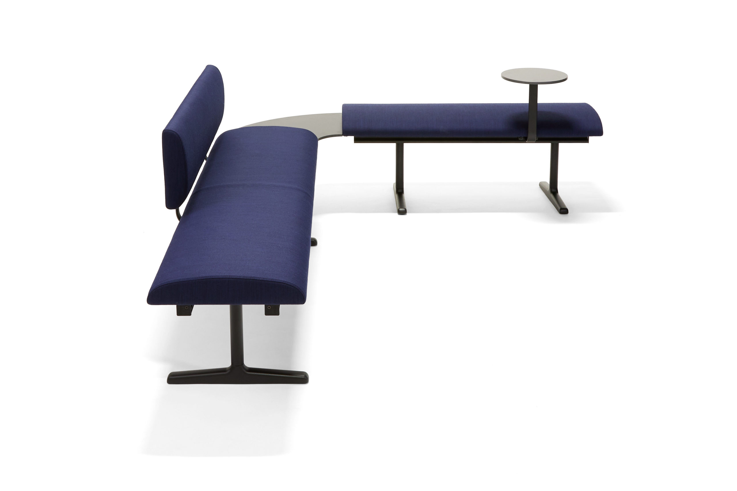 The idea for Teius was based on the challenge to combine function, precision and flexibility. The freestanding bench is the foundation, and more benches, backrests, armrests and connecting tables can be added on to create different lengths of extended seating solutions, optimised for specific environments. Play with different colours of seat and back, or go for a monochrome look. The frame is always powder coated, and the recycled aluminium base comes painted or polished. Versatility and adaptability combined with its many areas of use are the strengths and core of Teius modular seating.