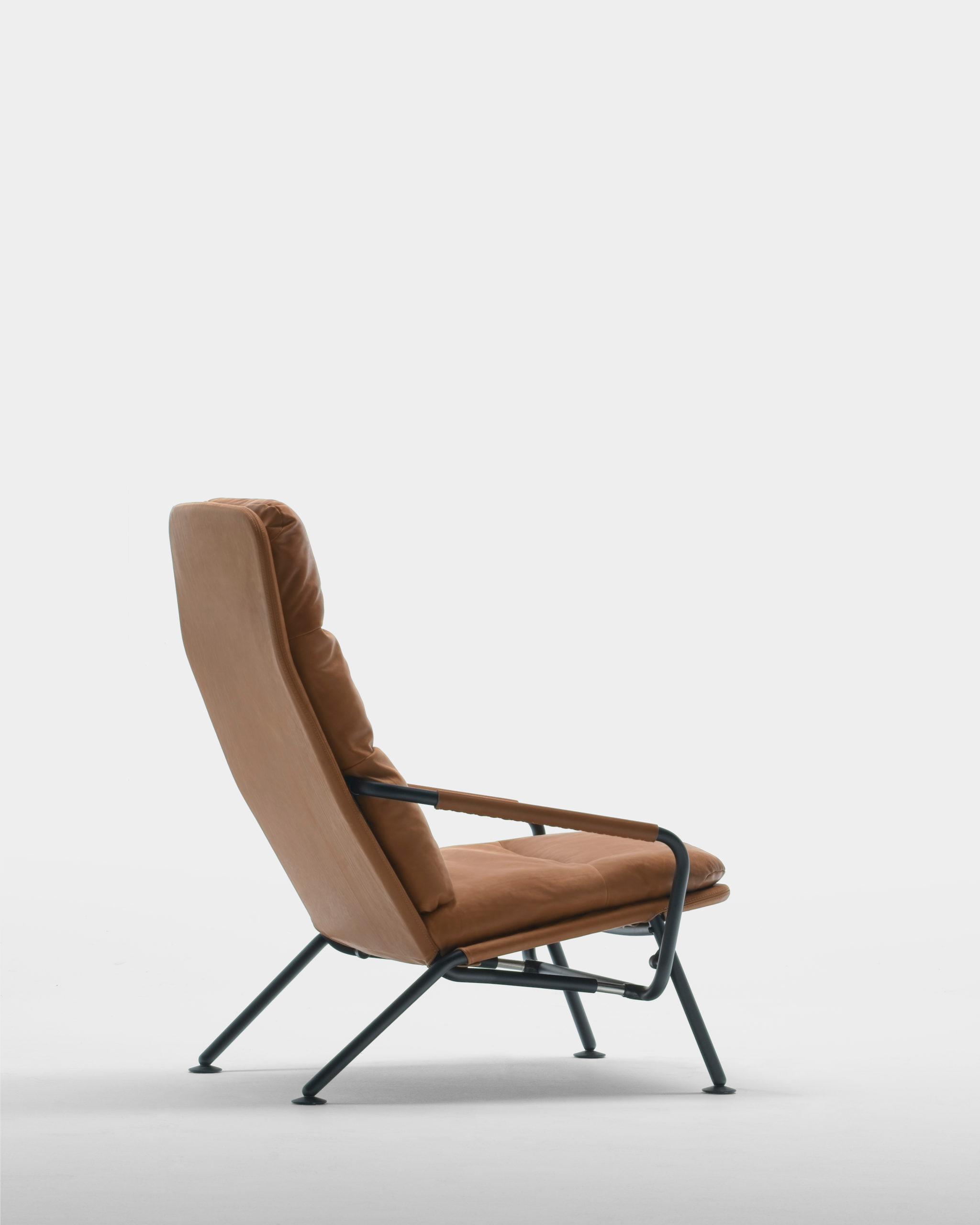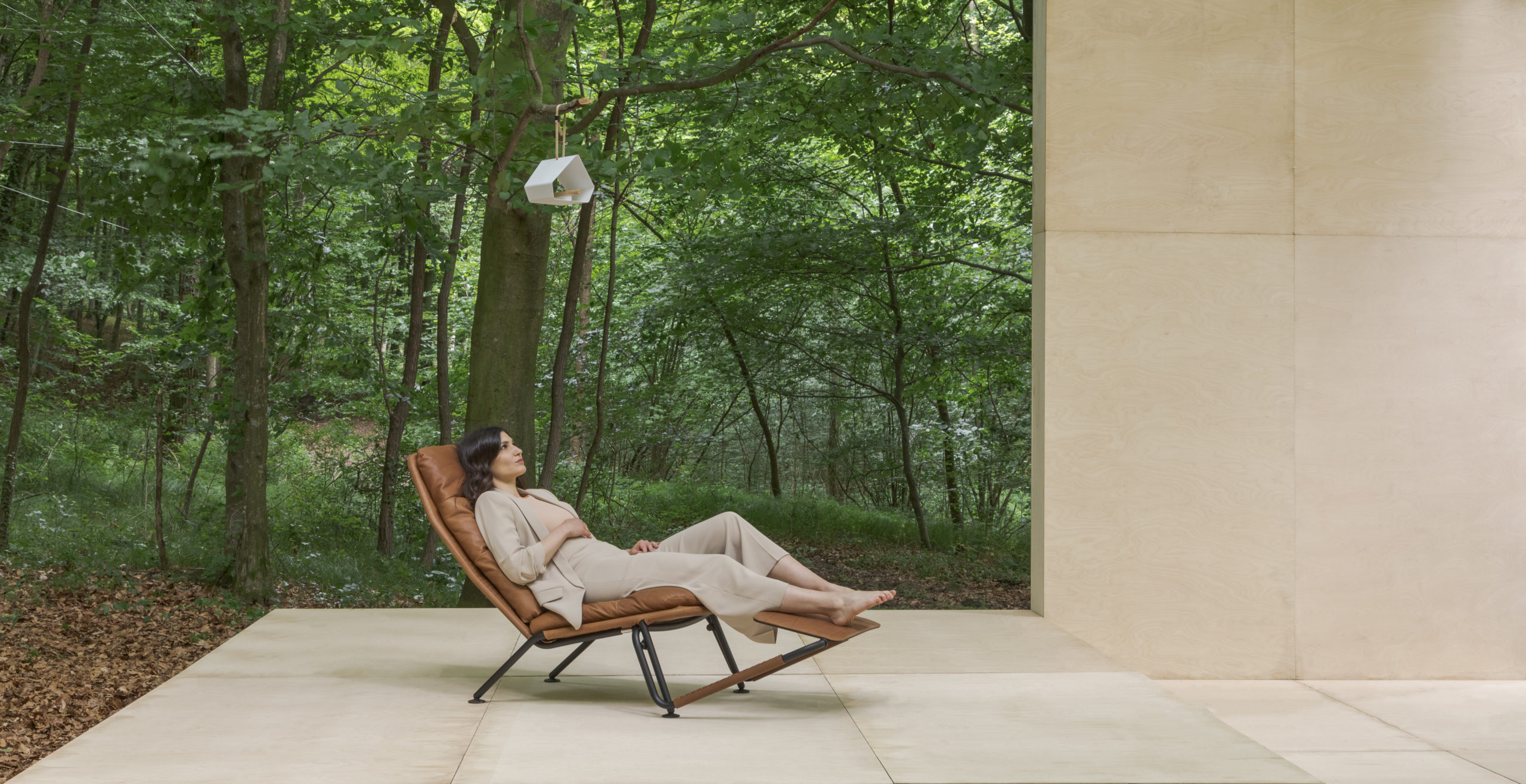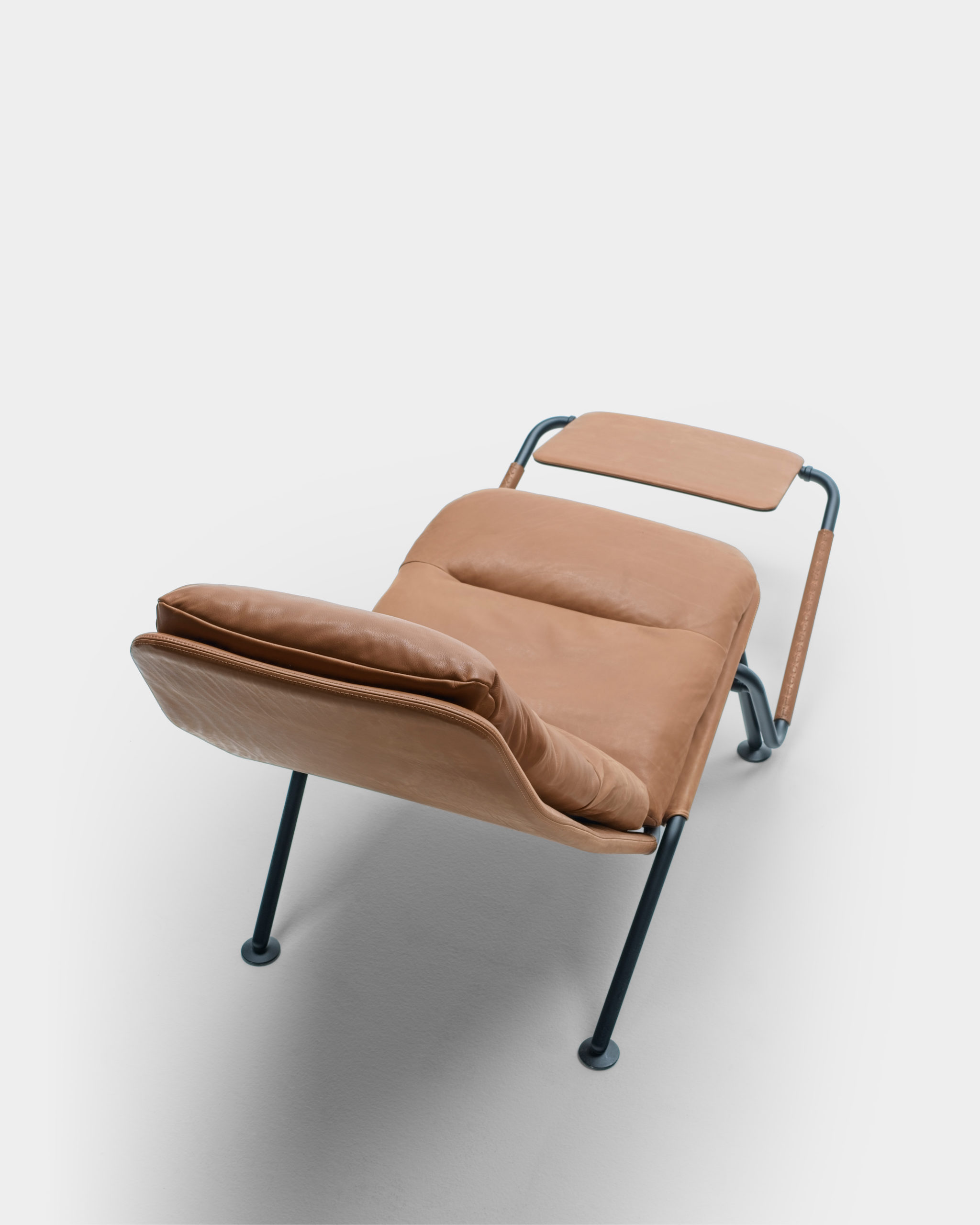 The design of the Kontrapunkt recliner transformer explores the possibility of creating an alternative to the standard bulky recliner armchair typology. The goal was to integrate the armchair and chaise longue into one compact visually light object. The very name Kontrapunkt (counterpoint) means “two opposite points”, and comes from music, where it denotes a method of composing two parallel melodic lines into one harmonious whole. This was achieved by using the armrests as part of an innovative mechanism that holds the leg pad extension and tilts the backrest into the proper position. The design is minimal and lays the product’s structural parts bare, without compromising its aesthetic. Comfort is achieved through an ergonomic shape and material elasticity, particularly through different versions of the product’s skin, upholstered in fabric or leather. The change of skins transforms its character, making it suitable for various situations of interior use. The ultimate experience of comfort can be additionally moderated through layers of feather and with the regulation of the height of the head cushion.