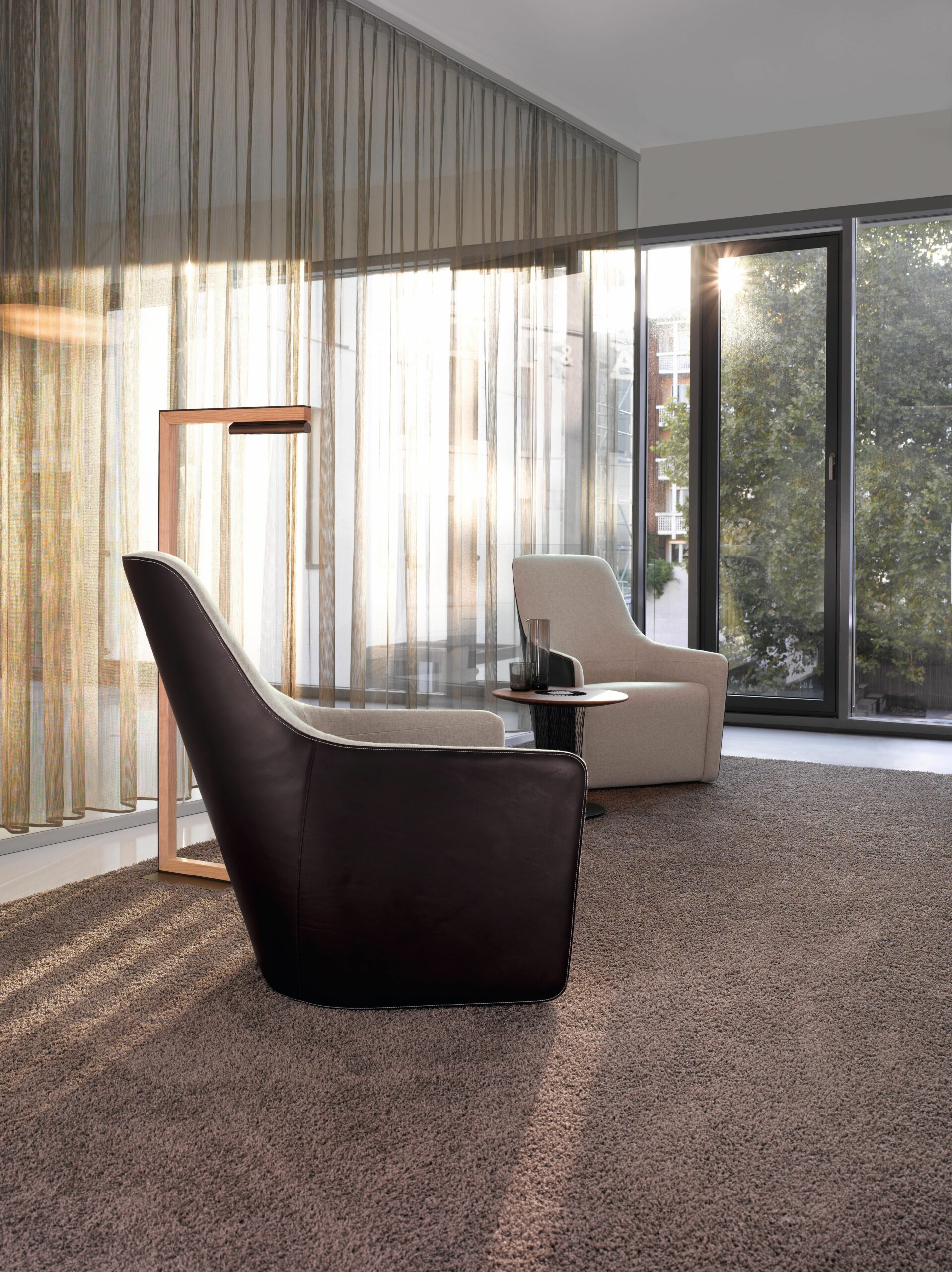 A new classic of salon culture. The Foster 520 armchair reinterprets the tradition of the club armchair. The designer has made masterly use of the materials: leather Saddle with its striking grain for the back, natural fabrics for the seat. Powerful elegance with a perfect dose of laissez-faire – essential for long evenings of charming hospitality, whether in a hotel lobby or at home.