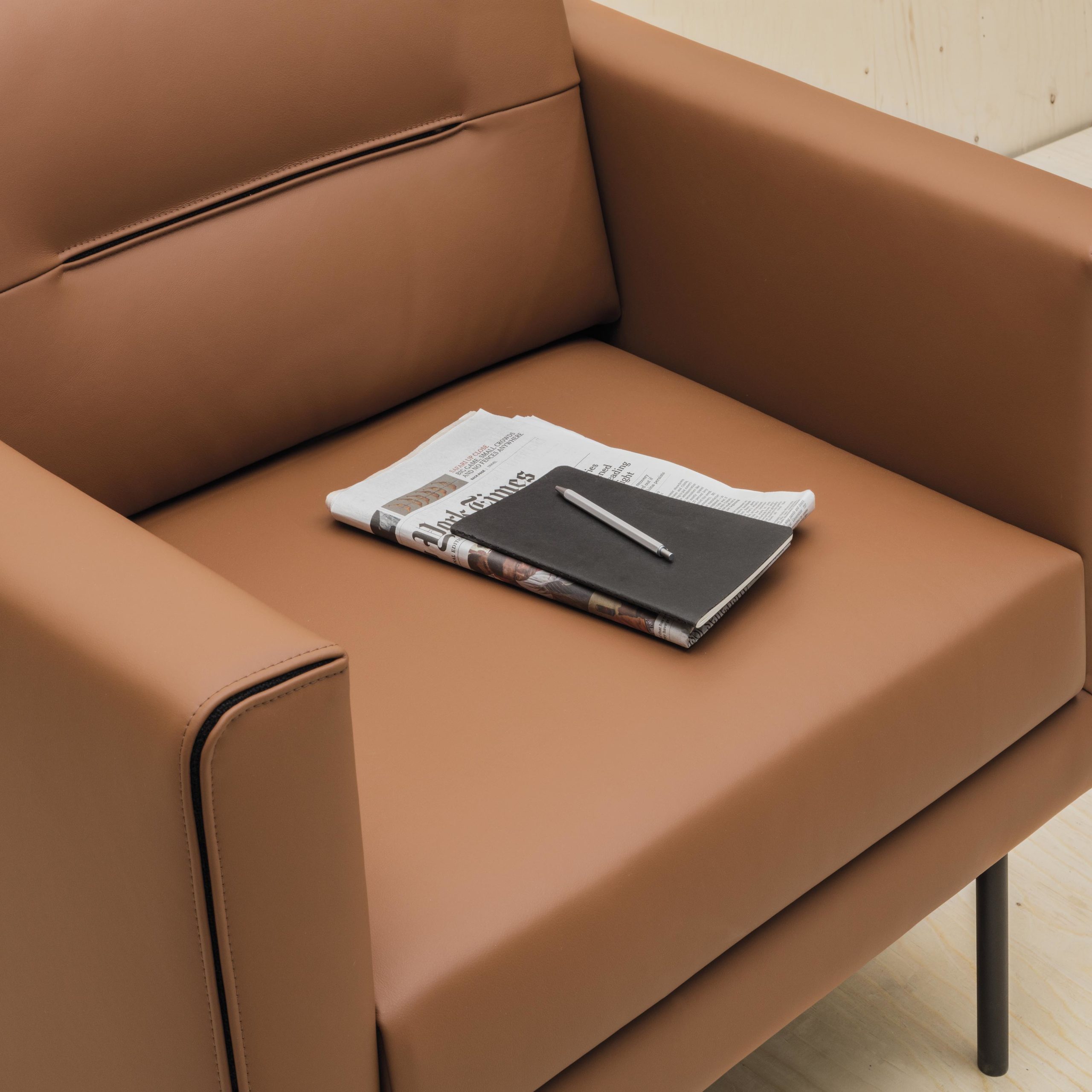 The Element collection starts from the international design classics but reinterprets it in a contemporary language. Beyond this evocation, Element stands out for its lightness and the chromatic play that is generated in the double seams of the centre of the backrest and the perimeter of the armrests. This upholstery work, very detailed and precise, is one of the most characteristic features of this design. Element is very comfortable as a lounge chair or as a twoor three-seater sofa. It has generous dimensions and is very light visually.