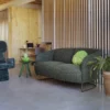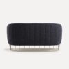 After receiving an excellent reception, Note added a new member to the family: thus our petite Tonella presented the birth of its parents. Spanish wine barrels remain the inspiration for the larger sofa and armchair. The straight line quilting runs down the outside of the piece, like staves, contrasting with the smooth interior cushions. The Marie Antoinette-style seat, back and arms are made from flexible moulded polyurethane foam. The plain interior area can be upholstered in fabric or leather, the outer area is quilted to follow the barrel style lines of the base and is therefore only available in fabric.