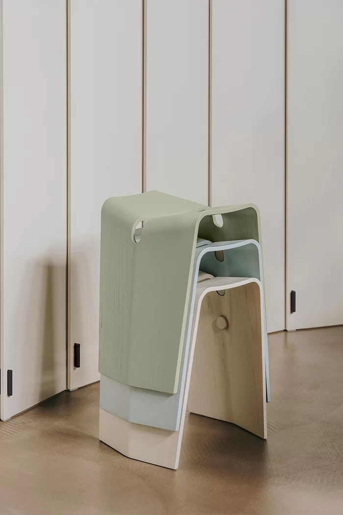 The Lapalma Kami stool, designed by Mario Ferrarini, takes inspiration from origami, transforming the simplicity of folded paper into a distinctive and versatile seat. Crafted from plywood, its flowing lines create a sculptural form that combines strength, comfort, and elegance.