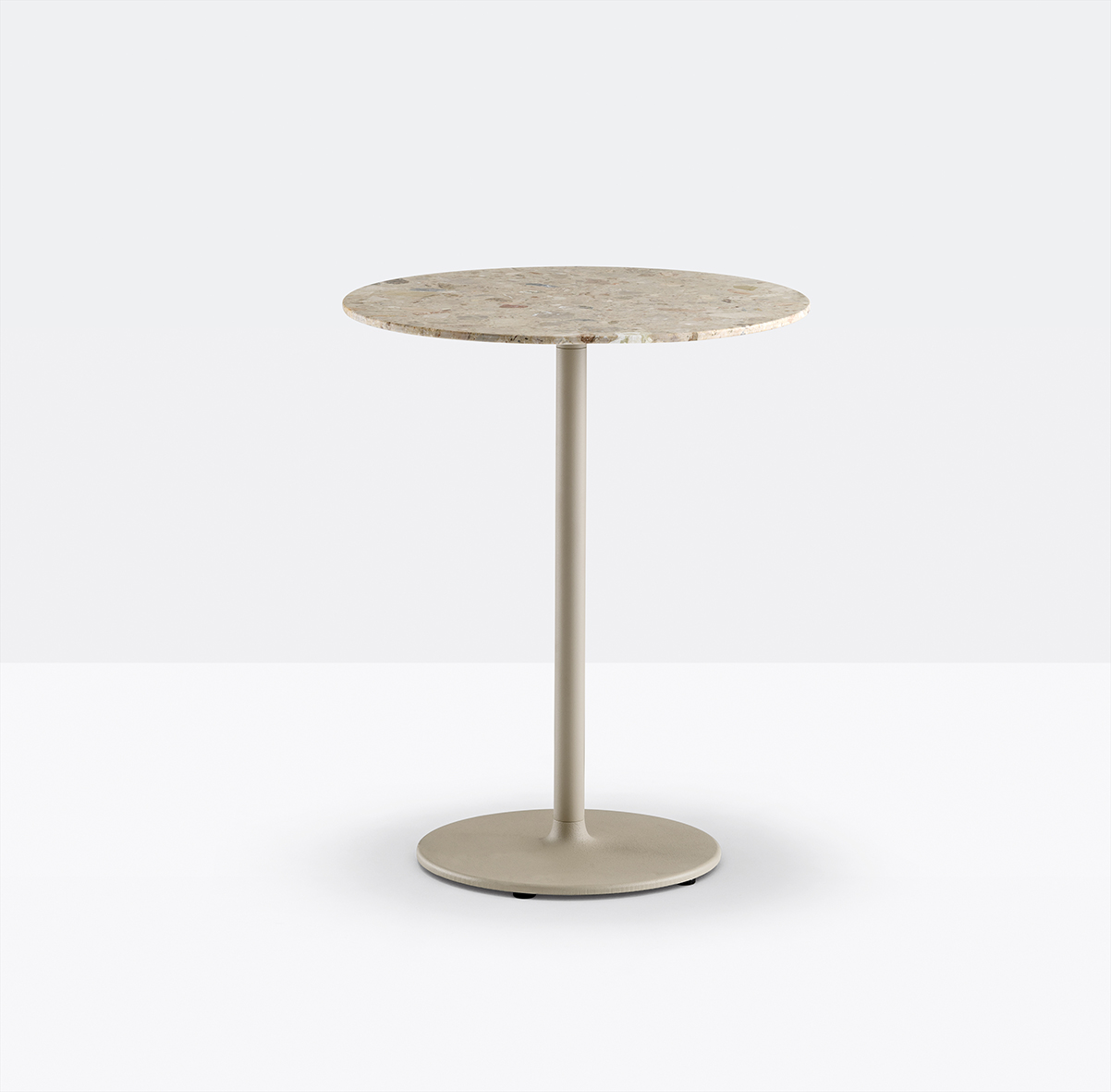 A harmony of curved lines characterizes Pedrali Stylus table in all its components. Table with square, powder coated, sand-blasted cast-iron base with rounded corners and steel tube column. Available combined with tops of different sizes and finishes.