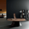 The Ola executive collection stands out with its bold, sculptural design and refined material palette—ideal for professionals who value a workspace that expresses both power and style. The signature elliptical base forms the heart of the design, offering visual strength while symbolically protecting the energy and focus of the executive at work.